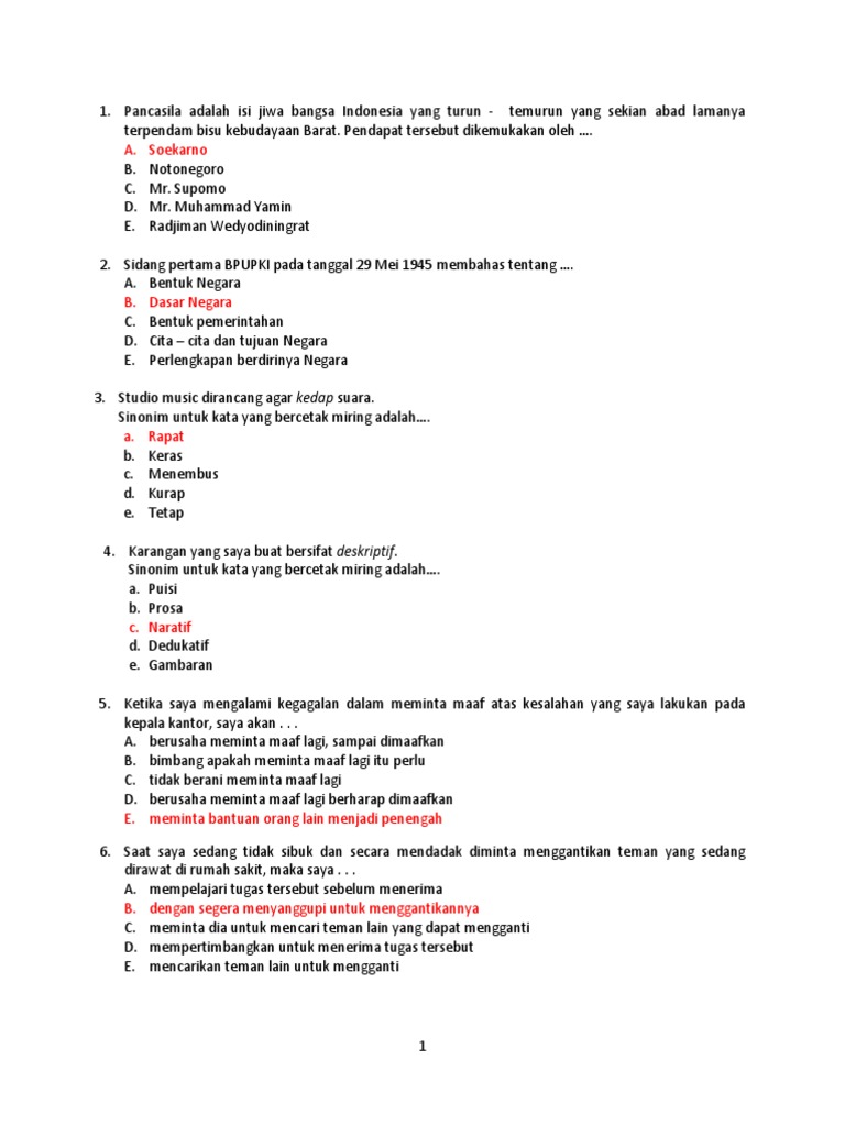 32 full pdf related to this paper. Itulah 10 contoh soal tes potensi akademik untuk materi deret angka dan h uruf. Akan dibentuk mprs dalam waktu singkat c. Download file soal tes latsar cpns doc. Berlakunya kembali uud 1945 dan tidak berlakunya lagi.