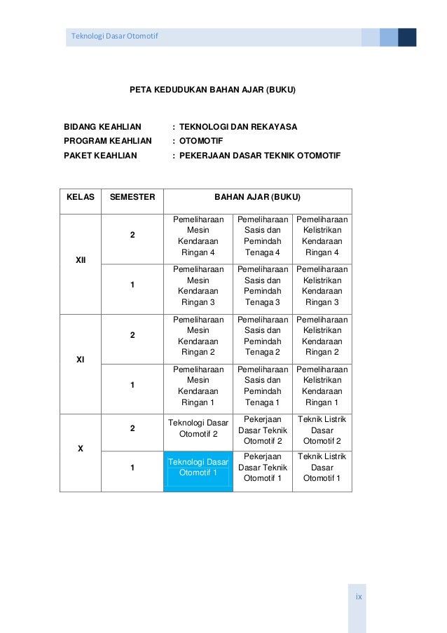 Teknologi Dasar Otomotif Hariyanto from image.slidesharecdn.com Buku teks ″ pekerjaan teknik dasar otomotif ″ ini disusun berdasarkan tuntutan paradigma pengajaran dan pembelajaran kurikulum 2013diselaraskan berdasarkan pendekatan model pembelajaran yang sesuai dengan kebutuhan belajar kurikulum abad 21, yaitu pendekatan model pembelajaran berbasis peningkatan keterampilan. Download rpp mata pelajaran komunikasi industri pariwisata smk kelas x kurikulum 2013 revisi 2017 pariwisata komunikasi kurikulum. Teknologi dasar otomotif teknologi dasar otomotif adalah salah satu mata pelajaran produktif di kelas 10 jurusan teknik otomotif. Materi gambar teknik otomotif kelas 10 semester 2. Soal pat matematika peminatan kelas 10 semester 2 dan jawabannya. Pekerjaan dasar teknik otomotif kelas semester. 1 rpp gambar teknik kelas x 2013 1 amp 2 Kegiatan belajar 1 sistem hidrolik dan pneumatik.
